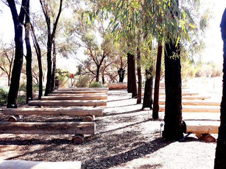Views of the scenic Bush Chapel for wedding ceremonies (log seating)